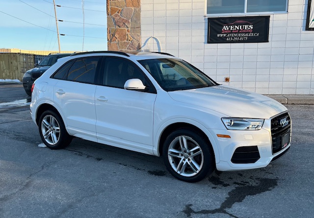 Plus Tax & Licensing2017 Audi Q3 Quattro Komfort. Very well equipped, low milage. Fully serviced and ready to go. Financing and Warranty available. Ontario or Quebec Certified Taxes and Licensing fees are extra. Avenues Sales & Leasing LTD. 7 Carbrooke St, Kanata